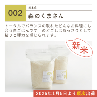 「森のくまさん」とは、「森の都」「熊本」で「生産」されたという意味から品種名を森のくまさんと名付けられました。冷めてもおいしく、お弁当にもオススメです。