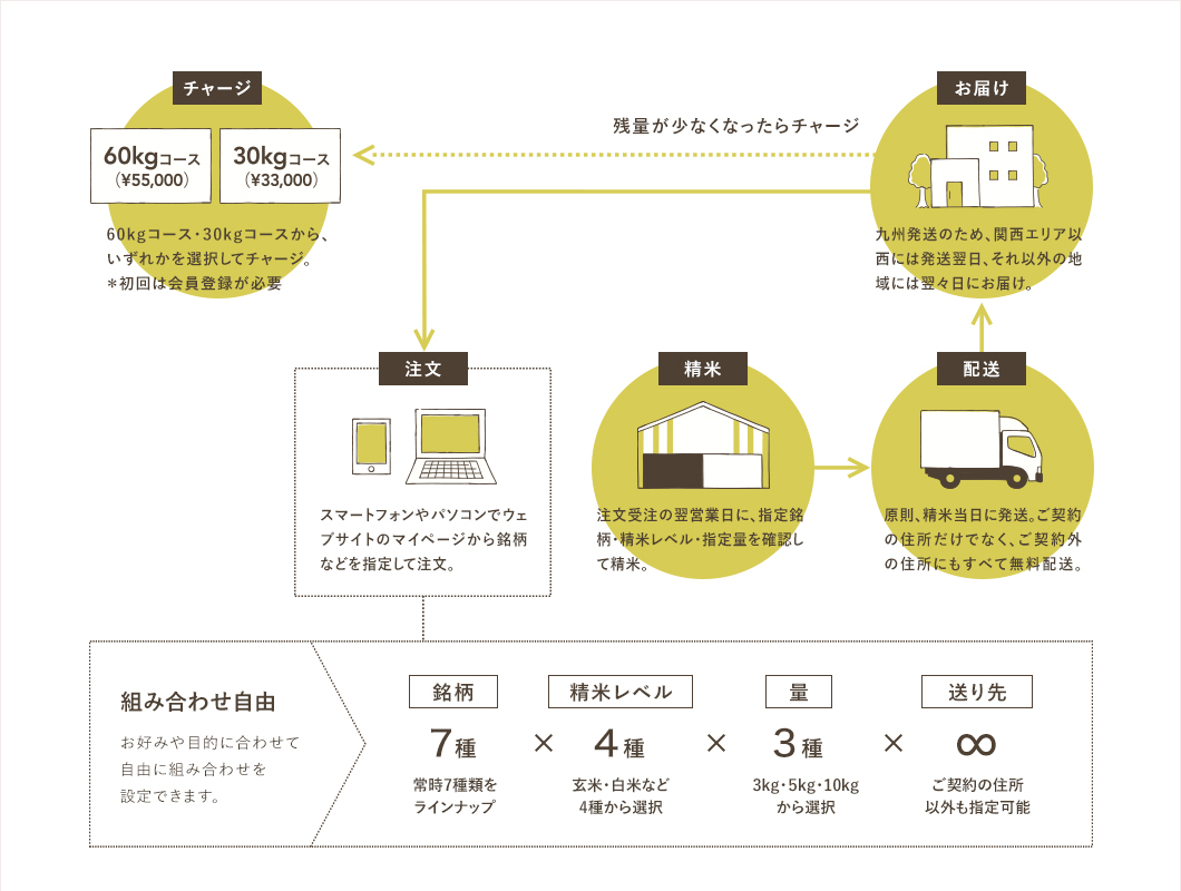 「次はこれを頼んでみよう」「七分づき米に挑戦してみよう」など、自分の好みにあった、自分だけのお米を見つけてください。