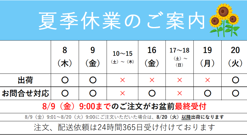 弊社では、誠に勝手ながら下記日程を夏季休業とさせていただきます。
